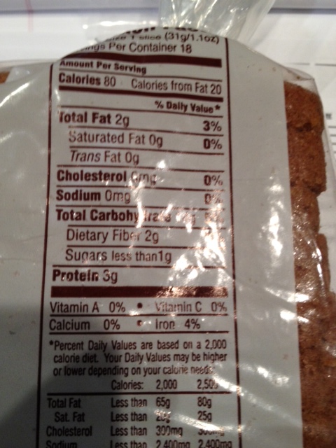 I bought some Stove Top stuffing that is labeled as low-sodium, but that’s a relative term. Half a cup of it contains 250 mgs of sodium. That’s only four ounces, I can’t imagine not wanting to eat more than that on Thanksgiving. Trader Joe’s sodium-free whole wheat bread.