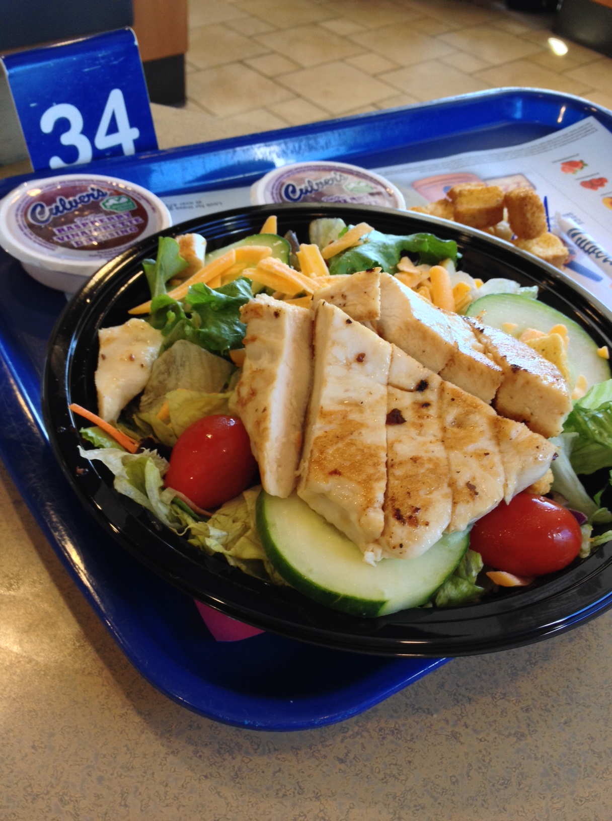 Restaurant salads are not good for you. Too much salt and sugar in dressings and on chicken like this Culver’s salad.