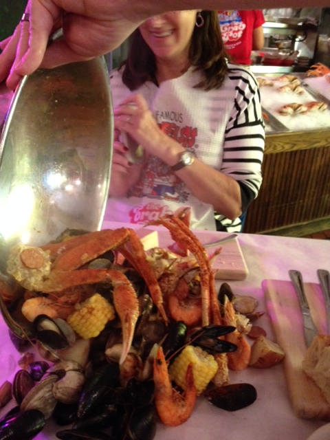 While the feast is primarily seafood it still put me over my salt daily limit of 1,200 -1,500 mgs, but this was one time I felt I could splurge given the low-fat nature of everything I ate. The feast we bought (there are several choices) included clams, mussels and crab, all of which are high in salt given they’re salt-water creatures. Also included is corn and potatoes.