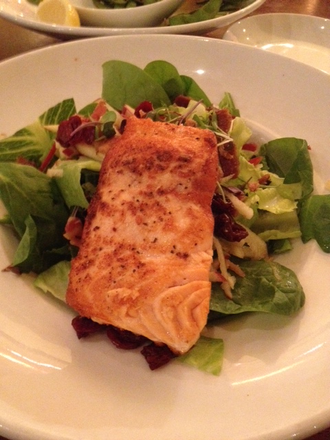 The up-charge for the salmon turned out to be $6 which seemed a bit high but I chalk it up to the price of eating as I must on my restricted diet.