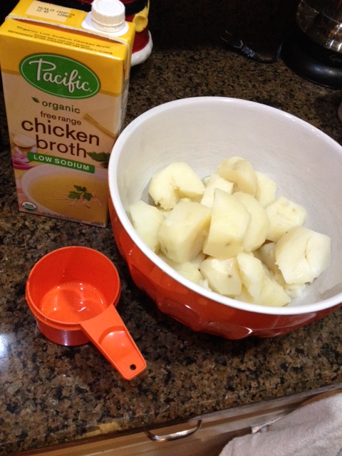 Potato skins are a Super Bowl standard but all that fat in the cheese and bacon are out if you’re on a low-salt, low-fat diet. But a reader of this blog recently suggested making mashed potatoes using low-salt chicken stock rather than butter and milk. So we’re adding these as an option for our week of Super Bowl treats.
