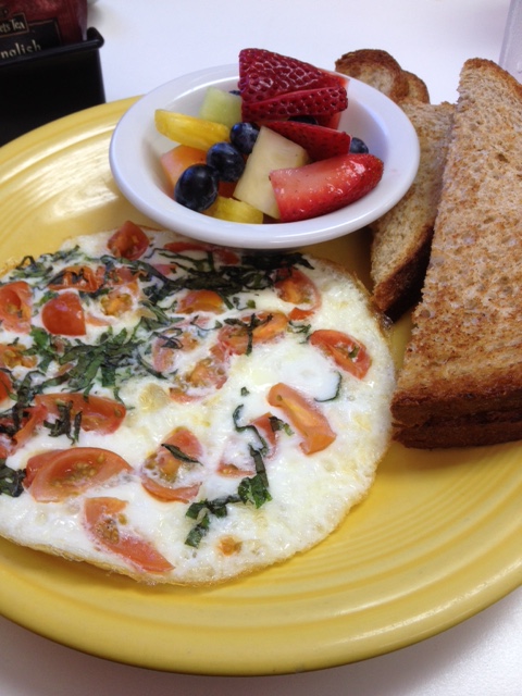I enjoyed my eggs, the mint was a nice touch and I was able to get it without the feta cheese it normally comes with, another must to keep my salt and fat intake down.