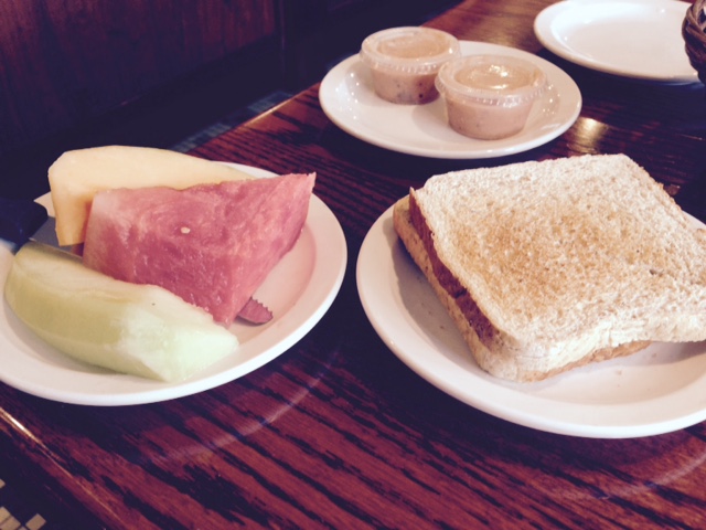 I was able to get fruit as a side instead of hash browns and the fruit was man-sized wedges of watermelon, cantaloupe and honeydew. I also was able to order whole wheat toast instead of white bread, and got it without butter, using some jelly instead and having only one slice because of the salt in most breads.