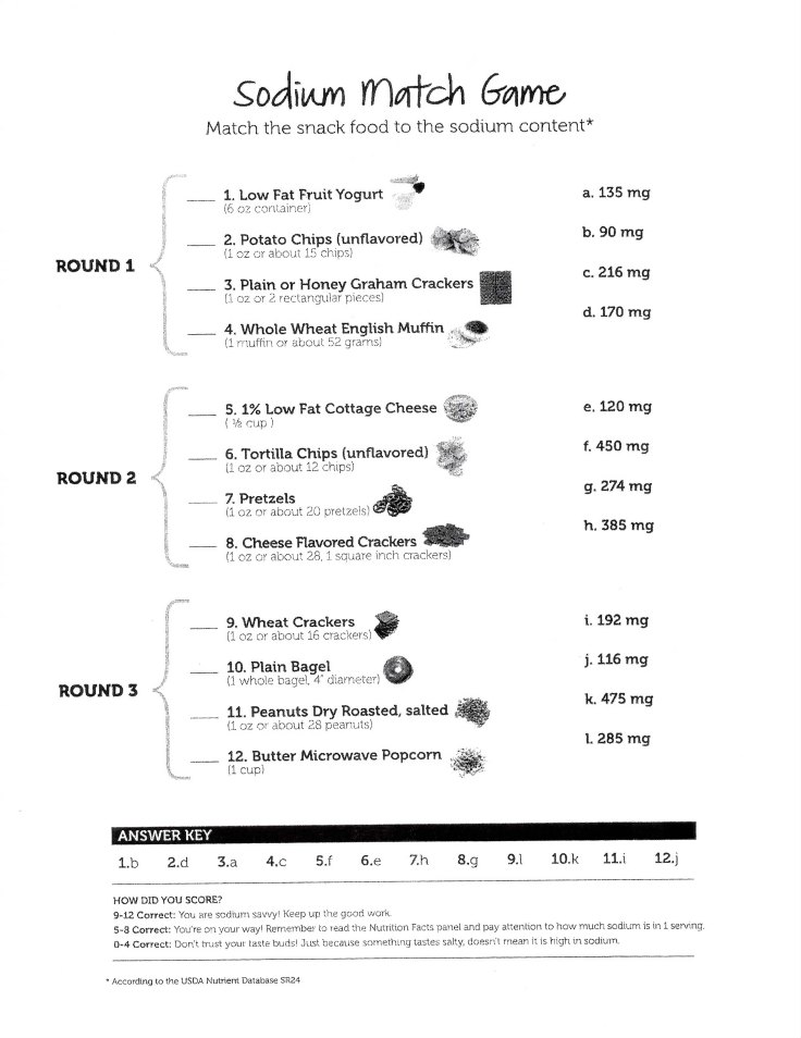 Try to math them up without looking at the answers first. I doubt many of you will find all the hidden sodium in some of the food items listed.