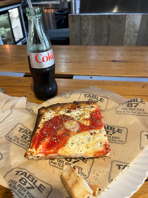 The pizza I had there was made in a coal-fired oven, a real throwback to my childhood when many bakeries used either coal or wood to bake. The place is called Table 87 and has two other Brooklyn locations. Real New Yorkers don’t muck up their pizza with a lot of toppings, so neither did I, getting just mozzarella and sauce. The round slice was so good, I tried the square too and it was equally delicious.