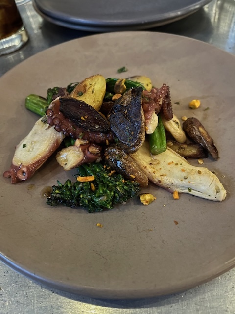 I opted for the oysters to start my Pescadero meal, they’re served raw, so aren’t mucked up with salt or fat. I had the octopus for my main course. It was grilled and wonderfully tasty, if you love octopus as I do.