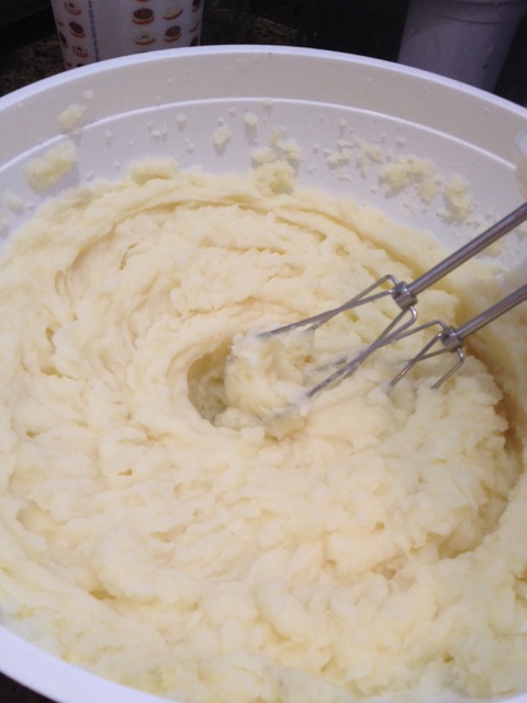 I started by using fat-free milk instead of regular or even 1%. Note that a cup of fat-free milk has 135 mgs of sodium for some reason that escapes me, so even there you have salt to deal with. I doubt I used a cup on five pounds of potatoes though. I don’t measure it in, just keep adding to get to the creaminess I want for the potatoes.
